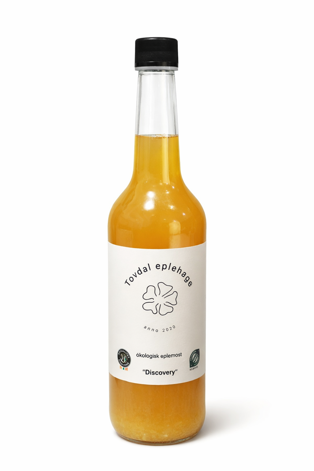 Frisk, sprø og naturlig. Presset av solmodne Discovery-epler fra Tovdal i indre Agder, uten konsentrat og uten tilsetninger. En lett og livlig eplemost med ren smak av norsk natur – perfekt til både hverdags og fest.
